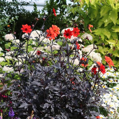 A stunning dahlia with large, double fiery bicoloured flowers. The petals are smooth and rounded, creating a beautiful and elegant bloom. Blooms from June to September. Ideal for borders, containers, or cut flowers. Thrives in full sun and well-drained soil.